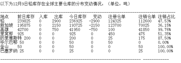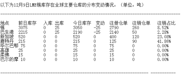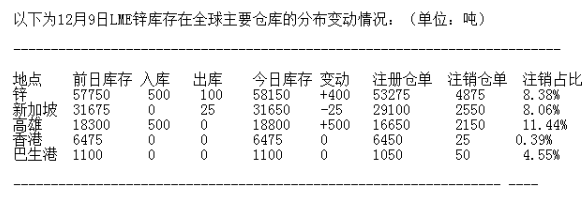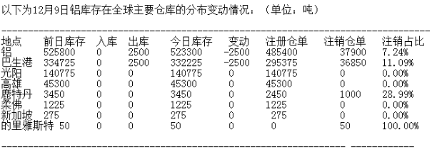 12月9日訊,倫敦金屬交易所(LME)有色金屬庫存及變化如下: