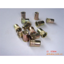 M4*11平頭豎紋鉚螺母 材質(zhì):低碳鋼 總長:11mm 表面處理:鍍彩鋅,藍(lán)白鋅