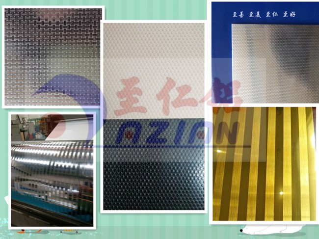 我司主要生產(chǎn)加工壓花鋁板,該花紋為編織紋花紋鋁板。該花紋鋁板是經(jīng)過壓花、剪切、氧化、封孔、自然涼干等工藝過程,形成表面帶有一層致密的三氧化二鋁保護膜的優(yōu)質壓花鋁板。它耐酸雨腐蝕性強于普通不銹鋼,具有持久的光澤和美觀的花紋。防腐涂層性能穩(wěn)定,附著力強,不脫落,耐沖擊,無毒副作用,安全環(huán)保。產(chǎn)品表面整潔、光澤。電氧化以后可以消除鋁板表面殘留油污、人工搬運指印、輕微的劃傷、擦等。被廣泛應用于冷柜、冷庫、冰箱、紅酒柜、太陽能熱水器水箱反光板、裝飾鋁質品、燈飾、箱包、消毒柜、廚柜、中央空調通風管道、室內外裝修、機械設備外殼等行業(yè)。壓花后能夠增強鋁板的厚度、強度,可壓厚度為0.15mm—3.0mm、寬度最寬1.4m的鋁板。壓花之后鋁板可加厚0.1mm-0.25mm。.尺寸可按客戶要求生產(chǎn)。