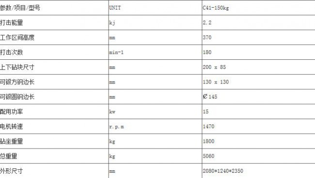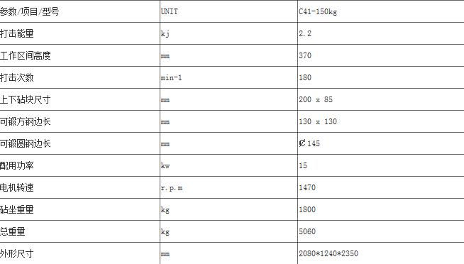 | 產(chǎn)品規(guī)格: | C41-150kg空氣錘 | ||