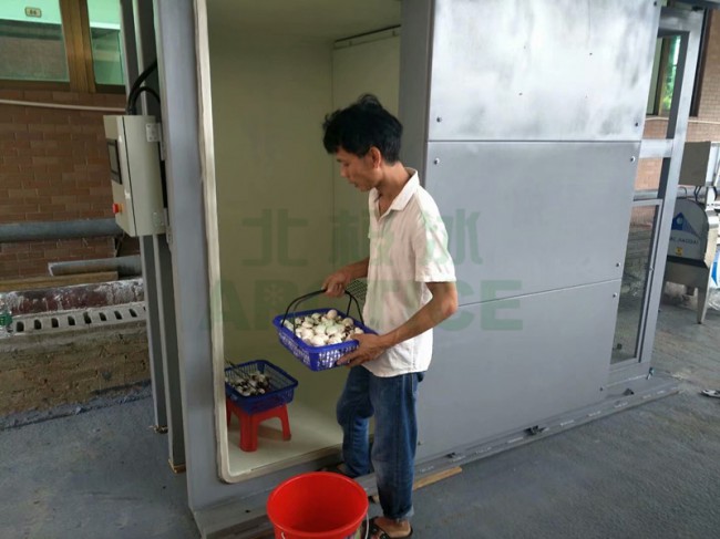 在我們的真空預(yù)冷機(jī)還未誕生使用之前,我們一直采用的都是傳統(tǒng)的冷庫預(yù)冷,然而我們的冷庫預(yù)冷有很多弊端;1.預(yù)冷時間長(從進(jìn)庫到出庫需要8-12小時左右) 而預(yù)冷機(jī)只需要短短的20-30分鐘左右(可以實現(xiàn)打冷裝車出售) 2預(yù)冷效果:冷庫預(yù)冷是靠熱傳遞而實現(xiàn)的預(yù)冷效果;要想菜心溫度達(dá)到理想的目標(biāo)值,那么這個預(yù)冷過程是由外向內(nèi)的一個過程,散葉的蔬菜到?jīng)]多大問題,而遇到甘藍(lán).包菜.娃娃菜等包得比較緊的蔬菜,就算預(yù)冷到8-12小時也不一定能達(dá)到目標(biāo)值,就算達(dá)到目標(biāo)溫度,時間肯定會延長,從而菜的表皮也可能會有不同程度的凍傷情況。 而真空預(yù)冷機(jī)是靠真空預(yù)冷的,當(dāng)我們的物體處于一個密閉的空間時,靠真空泵不斷把里面空氣吸走,當(dāng)真空箱體達(dá)到負(fù)壓的時候,我們水的蒸發(fā)點就會降低,從而通過蒸發(fā)蔬菜葉片上的水分和不斷吸走蔬菜縫隙中的熱量而達(dá)到預(yù)冷效果;由于這一過程處于真空狀態(tài)下,可以殺菌和抑制細(xì)菌生長,修復(fù)機(jī)械傷等。3功耗:冷庫制冷面積大,預(yù)冷時間長,耗電量不言而喻肯定很大。而真空預(yù)冷機(jī)面積相對小,預(yù)冷時間快,儲存無需長時間開啟冷庫,或者可以直接發(fā)貨,可以大大節(jié)約用電量。 機(jī)動性:冷庫是不能移動,而真空預(yù)冷機(jī)不一樣,它可以什么地方需要出現(xiàn)在什么地方。