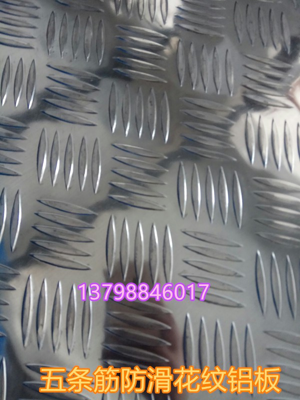 1、五條筋鋁合金花紋板材:五條筋防滑鋁板又成為柳葉形花紋板,鋁合金花紋板。具有良好的防滑能力,而被廣泛應(yīng)用在建筑(地板)平臺(tái)設(shè)計(jì)等方面。由于鋁板表面的花紋是按照五條凹凸花紋按照相對(duì)平行排列,而每款花紋與其它花紋之間呈現(xiàn)60-80度夾角,所以這款花紋具有優(yōu)秀的防滑性能。國(guó)內(nèi)通常采用此種鋁板作為防滑而用,具有良好的防滑效果,價(jià)格加便宜。