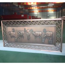 純銅純鋁雕刻屏風(fēng)背景墻,銅浮雕壁畫以其特有的金屬性質(zhì),解決了木制品的缺點(diǎn),能夠經(jīng)受戶外的風(fēng)吹雨淋而不變質(zhì),能夠有效的防火防潮防蟲(chóng)蛀,好的耐候性,10年不變色。純銅雕刻屏風(fēng)背景墻,銅鋁浮雕壁畫經(jīng)過(guò)精雕細(xì)琢,既呈現(xiàn)出現(xiàn)代氣息,又不失古典韻味,融中西文化于一體,呈現(xiàn)出古典與現(xiàn)代的美感。