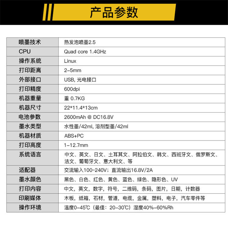 手動(dòng)生產(chǎn)日期噴碼機(jī)使用的耗材是墨盒,類似打印機(jī)里面的墨盒一樣,不使用的時(shí)候取下來(lái)墨盒的容量是47毫升,可以打印10萬(wàn)以上的日期(根據(jù)字體大小,內(nèi)容不同而有所不同).墨水很耐用,使用的是速干墨水,噴印上產(chǎn)品是秒干的.手動(dòng)生產(chǎn)日期噴碼機(jī)的屏幕是4.7寸的彩色觸摸顯示屏,靈敏度很高,操作很方便