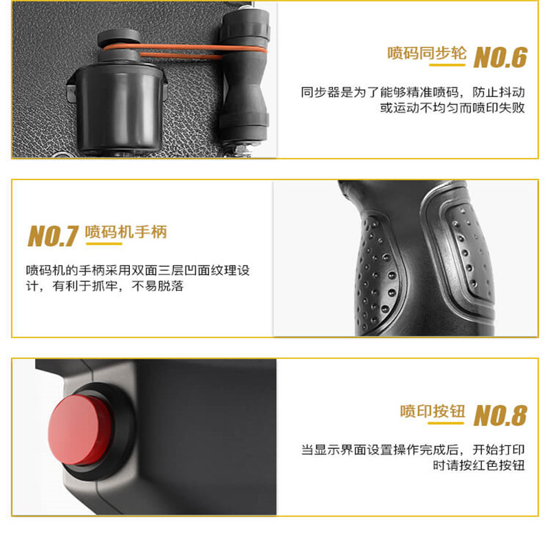 3.點(diǎn)擊打印按鈕,手拿著噴碼機(jī)的手柄,從左到右滾動(dòng)的同時(shí)觸發(fā)噴印按鈕。日期就*的噴印出來(lái)了.