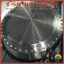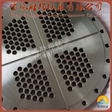 鈦管板,就是在圓形鈦鋼復合板上鉆出比管子外徑一樣略大一些的孔,將管子穿入焊住固定,起這樣作用的一種配件。