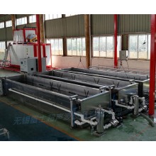 3.噴淋漂洗使用時(shí),將管材平鋪于斜面擺架上,針對(duì)貴司管材直徑細(xì),斜架上端布置高密度噴頭,以保證沒(méi)跟管材內(nèi)部都能?chē)姷剿P泵鎯A角20度。利于瀝水。選用高壓噴淋泵,大功率長(zhǎng)時(shí)間噴淋作業(yè)。可以抽取槽內(nèi)水沖洗,也可以接外水沖洗。整機(jī)設(shè)有排水口,也可借助高壓泵排水。整體管材選用均為2寸不銹鋼管材。