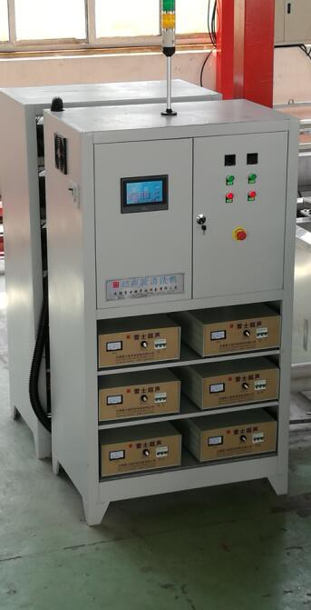1 .往清洗槽和漂洗槽里加水,加的水最少要浸沒(méi)加熱管。打開(kāi)電源總開(kāi)關(guān)柜里的超聲開(kāi)關(guān),加熱開(kāi)關(guān),噴淋開(kāi)關(guān)都要打開(kāi)。手動(dòng)開(kāi)啟加熱,設(shè)定好所需工作溫度。