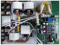 電磁加熱系統(tǒng)由兩部分組成:電磁控制器和加熱圈。原機(jī)受溫度控制的電源(加熱輸出接觸器(或固態(tài)繼電器)輸出端)經(jīng)電磁控制器將工頻交流電整流、濾波、逆變成20—50KHZ的高頻高壓電,通過連接線接到電磁加熱圈上,高頻交流電透過保溫材料作用于料筒,使料筒本身發(fā)熱。另外,也可以把電源直接輸入到電磁控制器,原有的溫度控制器直接用來控制電磁控制器。