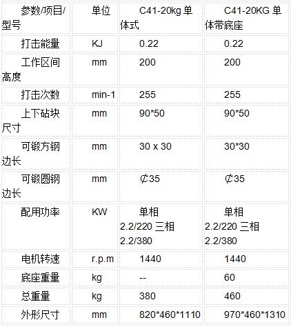 | 產(chǎn)品規(guī)格: | C41-20kg單體帶底座空氣錘 | ||