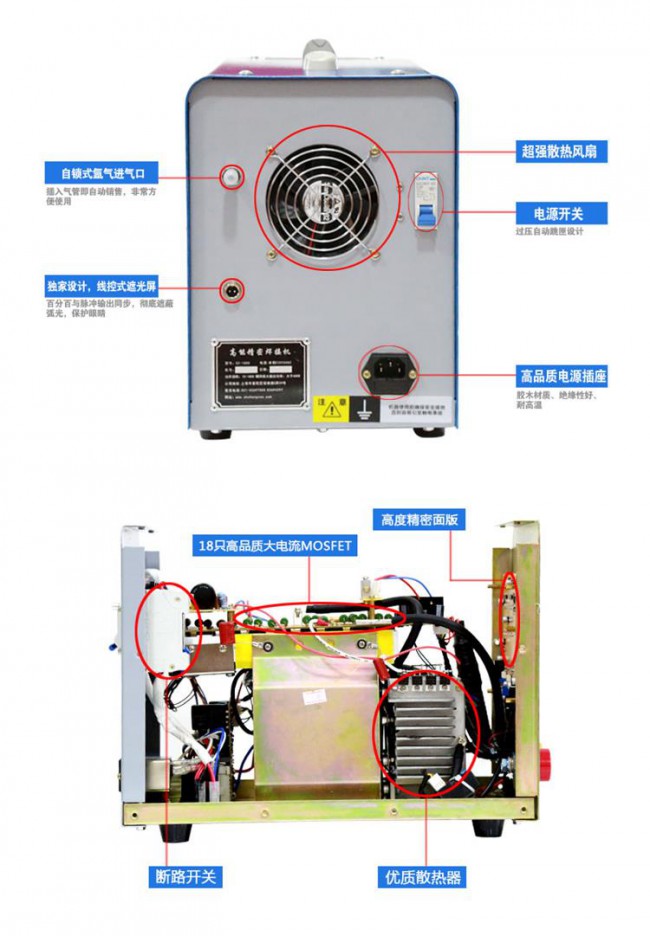 本焊機(jī)可在幾十毫秒內(nèi)完成焊絲和工件熔接過程,所以就工件基體來(lái)說,發(fā)熱較少,焊點(diǎn)以外的材料溫升小,不會(huì)產(chǎn)生退火、變色現(xiàn)象。由于每個(gè)焊接脈沖產(chǎn)生的熔池體積小于2mm3,其形成的應(yīng)力也較小。雖然一項(xiàng)焊接需要很多個(gè)熔池組合起來(lái),但由于焊點(diǎn)的應(yīng)力方向分散,工件受到的集中應(yīng)力較小,所以焊接后工件不變形、不變色(焊接完可以直接觸摸)。