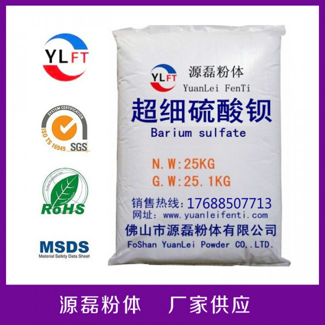 ‘源磊牌’超細(xì)硫酸鋇特點(diǎn);具有化學(xué)惰性強(qiáng),穩(wěn)定性好,耐酸、耐堿、耐水性,硬度適中,高比重,高白度,能吸收有害射線的環(huán)保材料。同時(shí)還可提高制品剛度,粘稠度和耐磨。使產(chǎn)品光澤亮麗,穩(wěn)定性好。能替代部分沉淀硫酸鋇,鈦白粉?;钚远趸璧葍r(jià)格較高的原材料,降低成本。