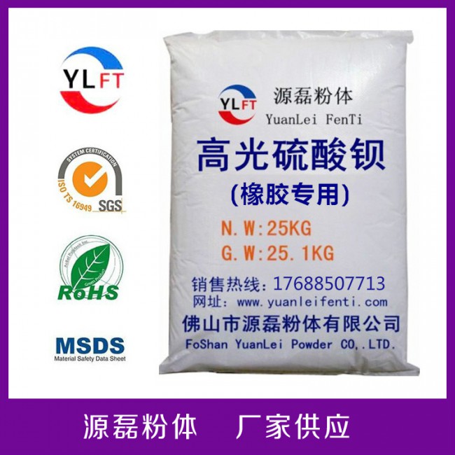 高光硫酸鋇用途;補充填料,可用于耐酸橡膠制品和一般制品,還可用作與表面涂布劑,上漿劑,加重劑,亦用于塑料,涂料,橡膠,油漆,油墨,陶瓷,蓄電池,搪瓷等。