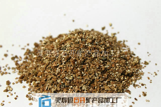 蛭石片經(jīng)過高溫焙燒其體積可迅速膨脹6-20倍,膨脹后的比重為60-180kg/m3,具有很強的保溫隔熱性能。蛭石加