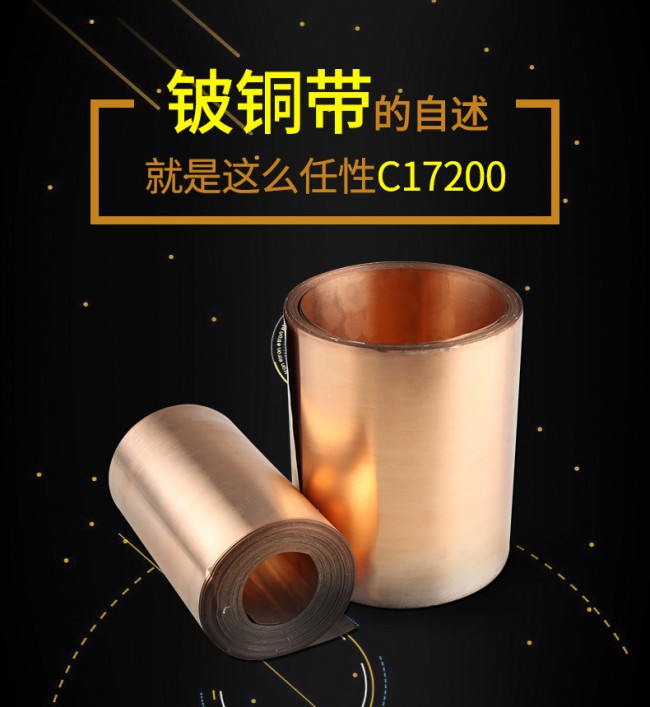 攝氏度 軟化溫度>600攝氏度,延伸率:1\%鈹青銅是沉淀硬化型合金,固溶時效處理后具有很高強度、硬度、彈性極限和疲勞極限,彈性滯后小,并具有耐蝕和加工性能,鈹銅合金是海底電纜中繼器構(gòu)造體不可替代的材料。耐磨、耐低溫、無磁性、高的導(dǎo)電性、沖擊無火花等特點。同時還具有較好的流動性和重現(xiàn)精細(xì)花紋的能力。由于鈹銅合金的諸多優(yōu)越性能,使其在制造業(yè)獲得了廣泛的應(yīng)用。導(dǎo)電性強,耐磨、耐低溫、無磁性、高的導(dǎo)電性、沖擊無火花等特點。同時還具有較好的流動性和重現(xiàn)精細(xì)花紋的能力。由于鈹銅合金的諸多優(yōu)越性能,使其在制造業(yè)獲得了廣泛的應(yīng)用。產(chǎn)品規(guī)格齊全,價格優(yōu)惠,包裝完好,銅質(zhì)純凈,直線度好,庫存量大,可提供材質(zhì)證明和SGS報告 。