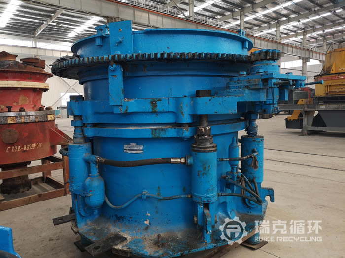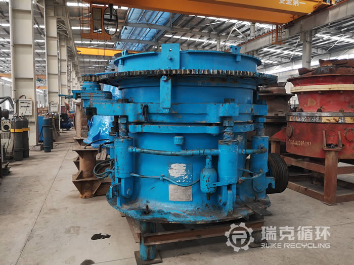 該臺HMP220多缸圓錐破碎機是我公司銷售人員2019年1月在山東某地回收的,回收之前設備還沒拆除,我公司技術人員對設備檢查之后又讓設備進行了運行,沒有發(fā)現(xiàn)比較明顯的損壞之后準予回收。在我公司車間技術人員把該設備進行了拆機檢查,對偏心軸、動錐等零部件進行仔細的檢查,發(fā)現(xiàn)主要零部件保存的都沒見完好,機身有明顯的銹跡。技術人員根據(jù)現(xiàn)場檢查情況下發(fā)了檢修通知,完成檢修和更換易損件之后進行數(shù)個小時的試機,我公司技術人員在現(xiàn)場仔細的檢查設備的運行狀況和試機數(shù)據(jù),在試機中沒有出現(xiàn)不良現(xiàn)象,各項技術也都符合標準。