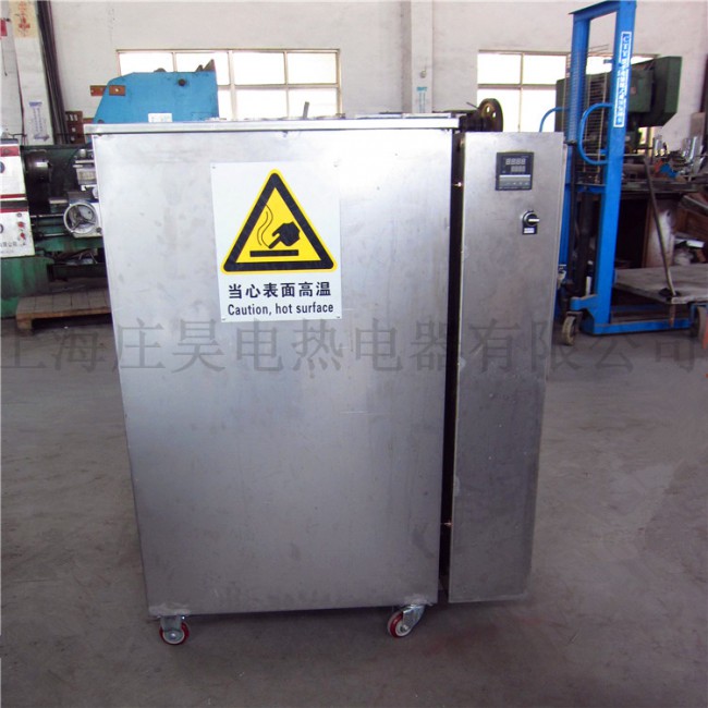 高溫電烤箱為內(nèi)外雙層結(jié)構(gòu),殼體為角鋼薄鋼板,內(nèi)外雙層殼體之間填充有纖維物質(zhì)。高溫電烤箱使用的纖維物質(zhì)能起到保溫的作用,形成可靠的保溫層。高溫電烤箱配置有熱風(fēng)循環(huán)系統(tǒng)及溫度測量與控制系統(tǒng)。