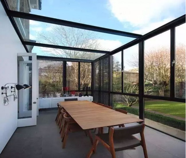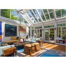 簡約風(fēng)白色陽光房用全鋁的陽光房系統(tǒng),骨架用幕墻斷橋鋁材料,頂用夾膠中空玻璃,四面用斷橋鋁門窗,良好的隔音設(shè)計(jì)和中空玻璃,有效阻止室內(nèi)外熱量交替。內(nèi)置PVB膠片鋼化夾膠玻璃,即使破碎,也不會(huì)對人體造成傷害,同時(shí)可吸收99.6\%紫外線。具有隔音、隔熱、通風(fēng)、遮陽、防塵、防水等功能。