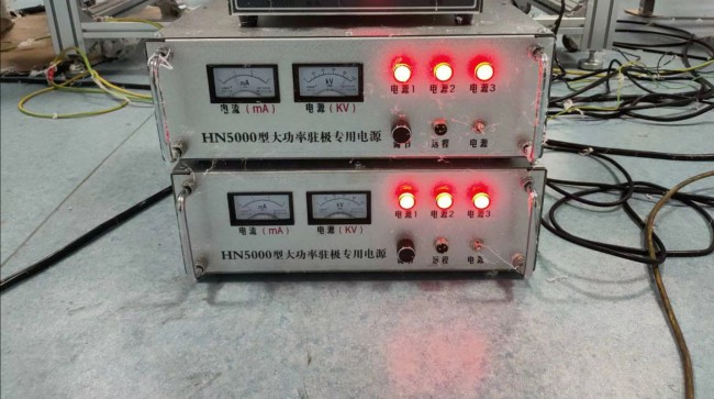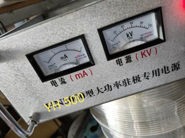 使用前必須把控制電箱牢固接地,高壓箱地線與滾筒鐵架相連接。靜電機(jī)用架子放好,與滾筒鐵架保持距離50公分以上,以免高低壓相互干擾。靜電駐極機(jī)周邊設(shè)備應(yīng)接地良好。 靜電機(jī)分控制電箱和高壓輸出電箱兩部分??刂齐娤浣拥鼐€?。?,高壓箱地線接上滾筒鐵架與地線相通。 靜電機(jī)放好后用5芯數(shù)據(jù)線把控制電箱和高壓輸出電箱連接。 (航空插頭與插座有個(gè)缺口,對上缺口插上旋上羅母固定)