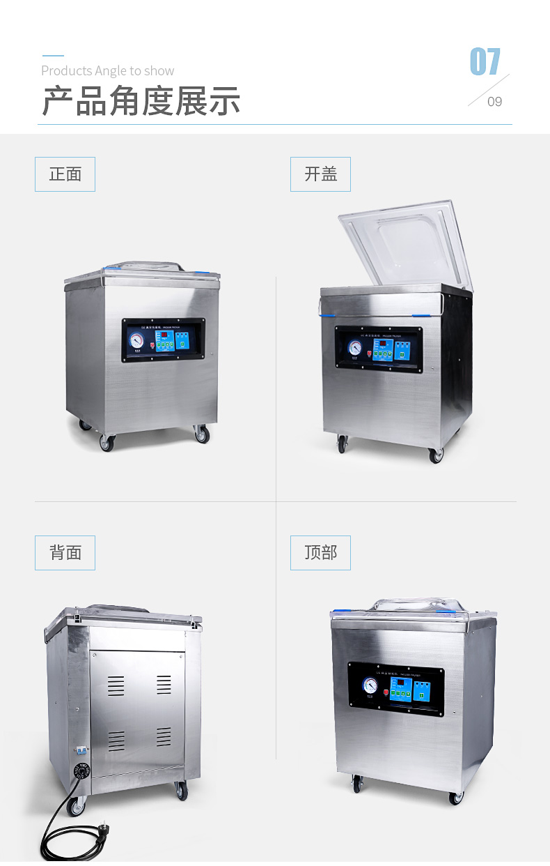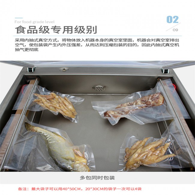 適用于食品、水產(chǎn)、化工原料、電子件、精密零件等產(chǎn)品的真空封口包裝。