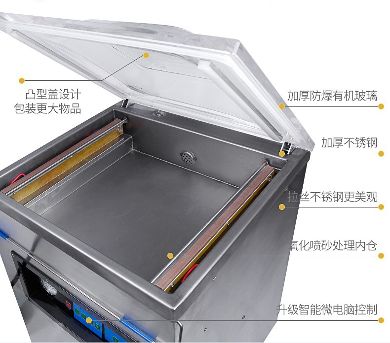 單室400真空包裝機(jī)為半自動真空設(shè)備,只需按下真空蓋即自動按程完成真空、封口、印字、冷卻、排氣的全過程。適用于各類食品、藥品、土特產(chǎn)、水產(chǎn)品、化工原料等各種固體、粉狀、糊狀、液體,電子產(chǎn)品(半導(dǎo)體、電路板、電子成品等)及機(jī)金屬加工件的真空包裝,以防潮、防氧化變色。經(jīng)過包裝的產(chǎn)品可防止氧化,霉變、蟲蛀、受潮,可保質(zhì)、保鮮延長產(chǎn)品儲存期限。