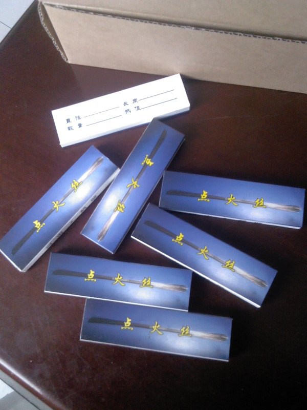 每盒300根,直徑0.12毫米,長(zhǎng)度80-100毫米,燃燒熱值50焦/根。