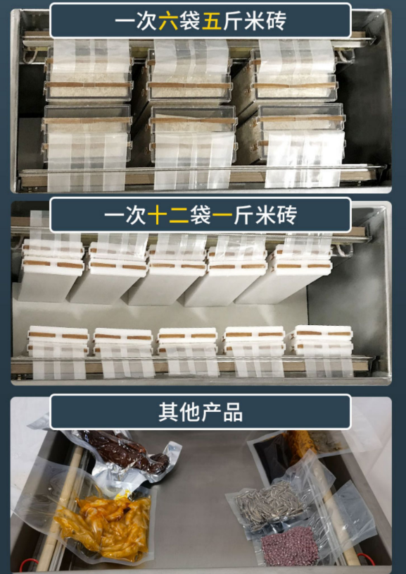 大米米磚真空包裝機 武漢大米米磚真空包裝機是加深型直空包裝機,自帶有多種不同大小的米磚模具,直空句裝后可以延長產(chǎn)品的保質(zhì)期,起到耐氧化、防蟲蛀、霉變、防受潮等功能,是一款專為直空包裝大米米磚的機型產(chǎn)品。該直空包裝機是中小型大米生產(chǎn)廠家直空包裝的*機型。