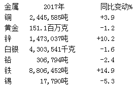 以下為秘魯能源和礦業(yè)部公布的該國2017年全年礦物產(chǎn)出數(shù)據(jù):