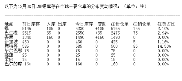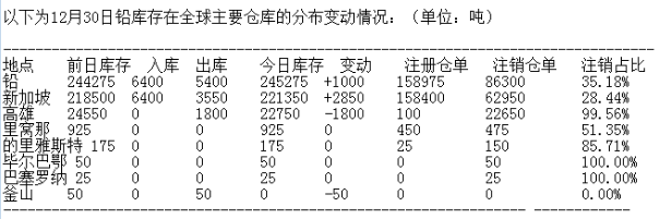 倫敦金屬交易所(LME)有色金屬庫存及變化如下: