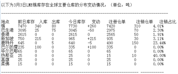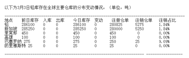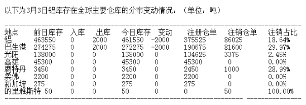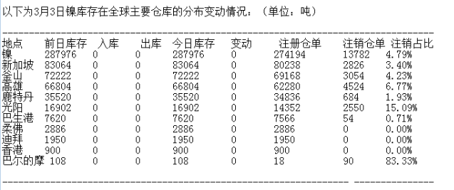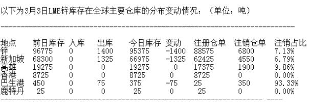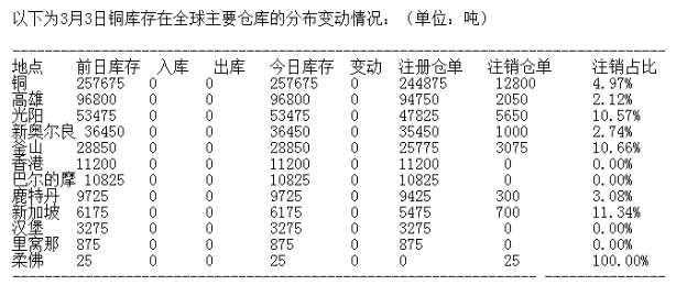 LME 3月3日有色金屬庫(kù)存分布情況