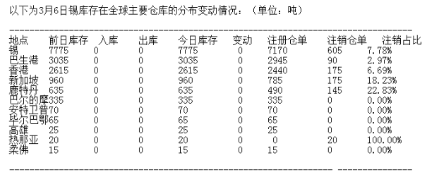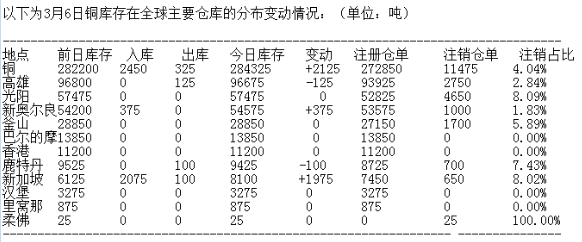 3月9日國(guó)內(nèi)市場(chǎng)電解銅現(xiàn)貨庫(kù)存58.98萬(wàn)噸,較2日增1.58萬(wàn)噸