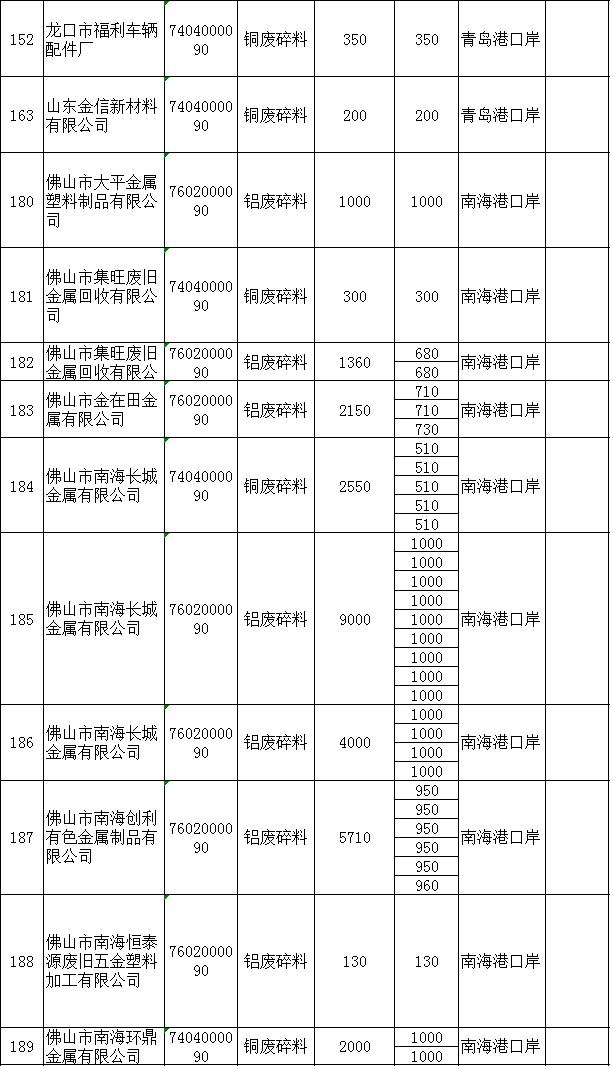 中國環(huán)境部下屬的中國固體廢物和化學(xué)制品管理局在明年首批配額中公布了270,885噸高級(jí)銅廢料和275,465噸鋁廢料的進(jìn)口配額。