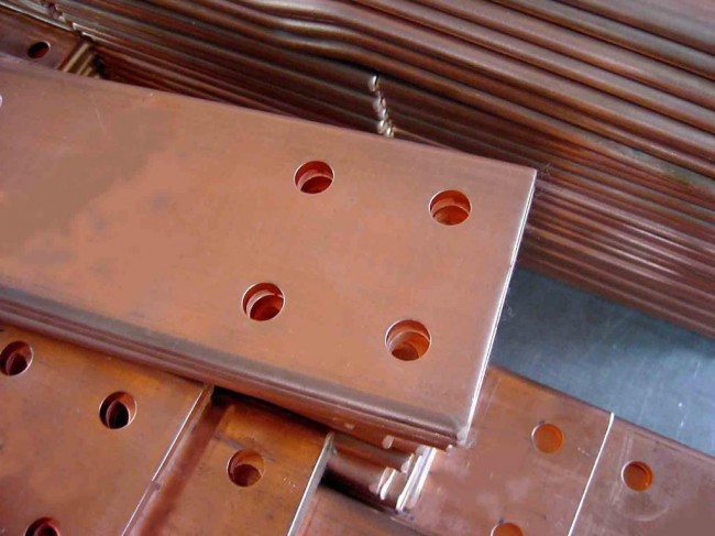 銅排又稱銅母排或銅匯流排,是由銅材質(zhì)制作的,截面為矩形或倒角(圓角)矩形的長(zhǎng)導(dǎo)體(現(xiàn)在一般都用圓角銅排,以免產(chǎn)生尖端放電),在電路中起輸送電流和連接電氣設(shè)備的作用。 銅排在電氣設(shè)備,特別是成套配電裝置中得到了廣泛的應(yīng)用;一般在配電柜中的U、V、W相母排和PE母排均采用銅排;銅排在使用中一般標(biāo)有相色字母標(biāo)志或涂有相色漆,U相銅排涂有"黃"色,V相銅排涂有"綠"色,W相銅排涂有"紅"色,PE母線銅排涂有"黃綠相間"雙色。