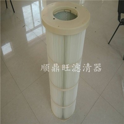 濾筒的品種較多,有細而長與粗而短之分;細長濾筒(如φ≤160,L=1~2m),其褶(如45褶)間空隙大、夾角大,褶少而淺,過濾面積比同徑同長的濾袋大2~5倍,清灰易而效果好;適用于濃度≥15g/m粉塵的過濾除塵,過濾風速0.6~1.2m/min。粗短濾筒(如φ350,L=0.66m)直徑大、長度短、褶多(120~350褶)而深、褶間空隙小,過濾面積大,較之同徑同長濾袋面積大14~35倍,適于場地面積小、空間小的地方布置;但因褶角小,粉塵易積聚,難于清灰,適于濃度≤5g/m粉塵的過濾除塵,過濾風速不宜>0.6m/min。