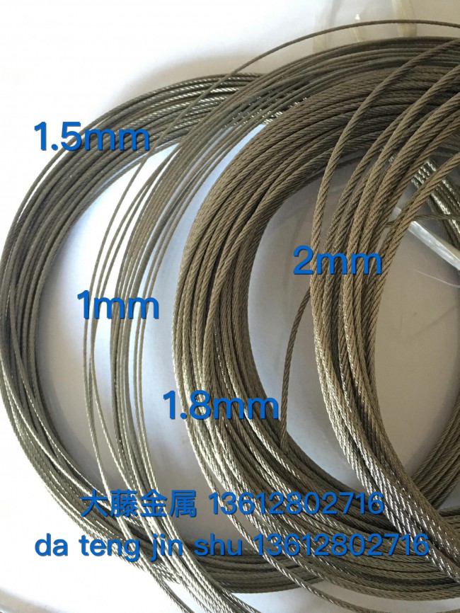 不銹鋼絲繩304不銹鋼絲繩材質(zhì)有1Cr18Ni9(SUS302)、0Cr18Ni9(SUS304)、1Cr18Ni12MozTi(SUS316) 及其它特殊要求的材質(zhì)。各種結(jié)構(gòu)均能生產(chǎn),直徑從0.15mm-46mm。鍍鋅鋼絲繩采用優(yōu)質(zhì)碳素結(jié)構(gòu)鋼,60# 65# 70#等,表面可熱鍍鋅或電鍍鋅。根據(jù)用戶需要,鋼絲繩可以用“超聲波清洗儀”進(jìn)行去油污處理,使鋼絲繩表面更加光亮清潔。有木輪包裝、軟卷包裝。