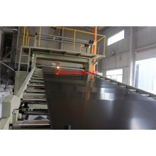 加壓式密煉機(jī) → 自動(dòng)不銹鋼提升機(jī)→ 強(qiáng)制喂料機(jī) → GLD單螺桿 →2500mm成型模具 →三輥擠壓表面處理→牽引機(jī)→板材電暈處理 → 切割機(jī) → 堆放 →油壓發(fā)泡機(jī)
