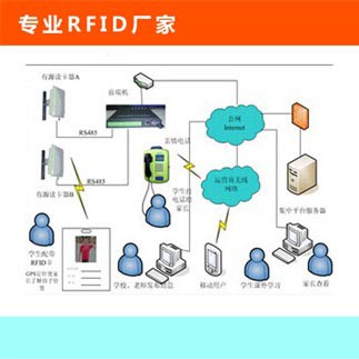 (b)學(xué)生放學(xué)時(shí),學(xué)生佩戴胸卡,從讀卡器A到讀卡器B,讀卡器A首先讀到胸卡信息,并送往前端機(jī);其次是讀卡器B讀到胸卡信息,并送往前端機(jī);當(dāng)胸卡脫離識(shí)別區(qū)域后,前端機(jī)根據(jù)接收胸卡先后順序判斷學(xué)生進(jìn)出方向,并把判斷結(jié)果送往系統(tǒng)平臺(tái);系統(tǒng)平臺(tái)根據(jù)胸卡對(duì)應(yīng)的學(xué)生的資料把短信送往學(xué)生家長的手機(jī)上。