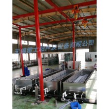 3.噴淋漂洗使用時(shí),將管材平鋪于斜面擺架上,針對(duì)貴司管材直徑細(xì),斜架上端布置高密度噴頭,以保證沒(méi)跟管材內(nèi)部都能?chē)姷剿P泵鎯A角20度。利于瀝水。選用高壓噴淋泵,大功率長(zhǎng)時(shí)間噴淋作業(yè)。可以抽取槽內(nèi)水沖洗,也可以接外水沖洗。整機(jī)設(shè)有排水口,也可借助高壓泵排水。整體管材選用均為2寸不銹鋼管材。