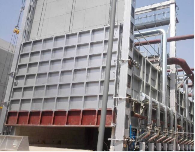 爐體結(jié)構(gòu)為外框架結(jié)構(gòu),外殼結(jié)構(gòu)由型鋼(槽鋼)和鋼板拼裝焊接而成。此結(jié)構(gòu)具有牢固可靠、外形美觀、長期高溫使用不易變形等優(yōu)點。為了方便爐溫均勻性檢測、在爐體后部設(shè)有檢測孔,便于檢測熱電偶穿入爐膛安裝,使用的時候?qū)⒖状蜷_,平時工作時封閉,以免爐內(nèi)溫度散失影響爐溫均勻性。