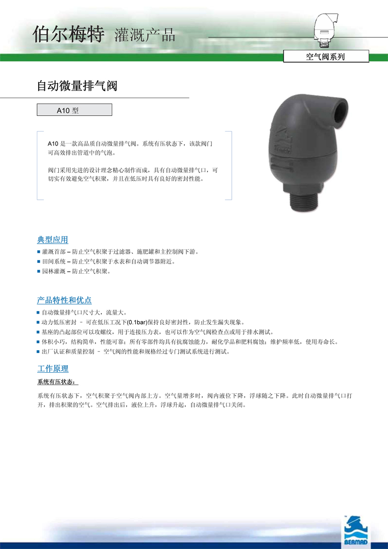 伯爾梅特A10自動(dòng)微量排氣閥的產(chǎn)品特點(diǎn):