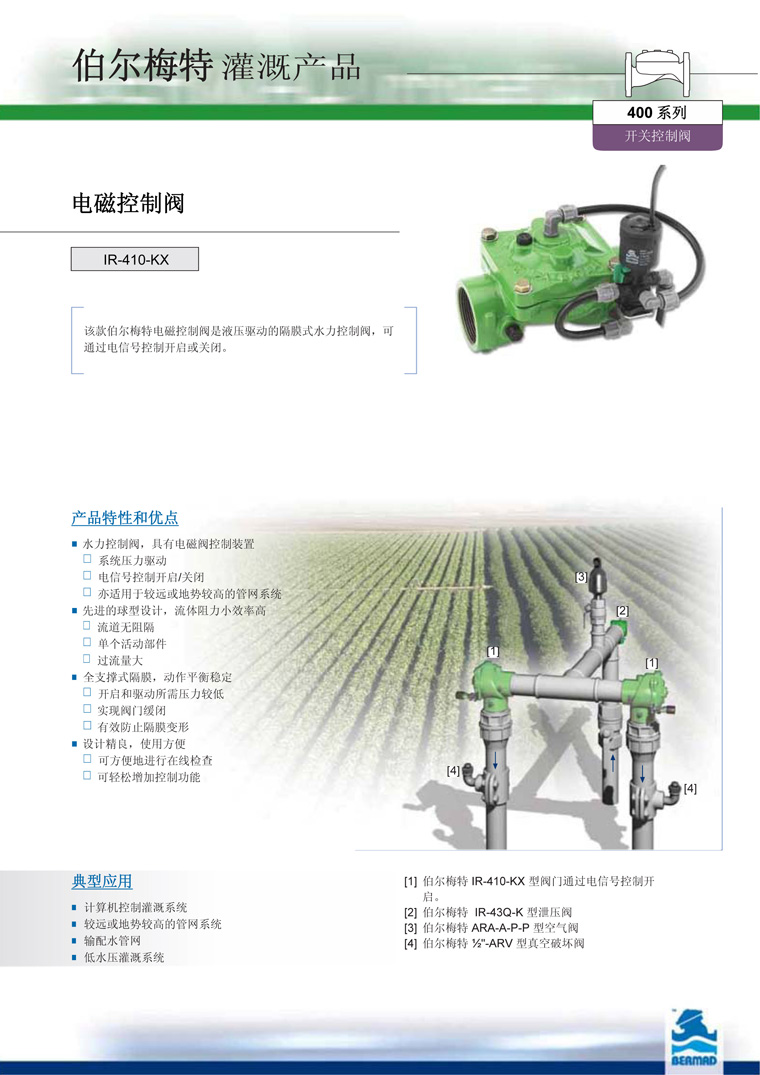 以色列伯爾梅特BERMAD伯爾梅特410電磁控制閥,是液壓驅(qū)動的隔膜式水力控制閥,可通過電信號控制開啟或關(guān)閉。