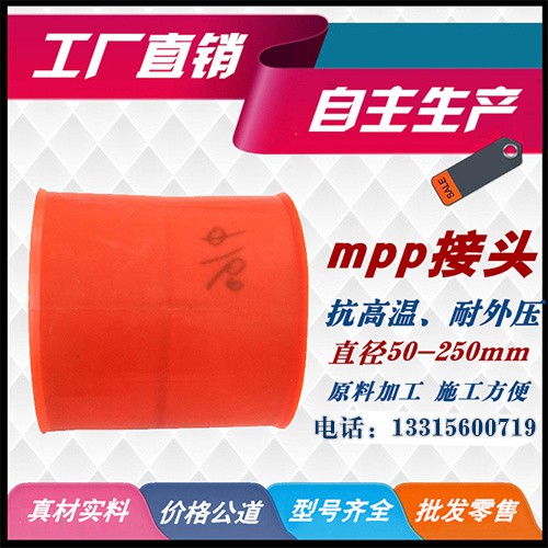 MPP電力管接頭: MPP電力管接頭是由MPP*加工而成,主要起到連接MPP電力管CPVC電力管的作用,它省卻了原有的電力管的笨重連接和熔接。減少了工作時間**了工作效率。 電力管接頭規(guī)格:50#、63#、75#、90#、100#、110#、110#、116#、125#、140#、150#、160#、167#、175#、180#、185#、192#、200#、203#、210#、219#、216#、225#、235#、250#、315#
