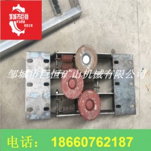 壓繩輪組用壓板固定在軌道的下沿上。一般在下列地點考慮安裝壓繩輪: ①在水平彎道的前后,當彎道處的位臵較低時。②在巷道的下凹變坡點,當變坡角較大時,主壓繩輪組應保證安裝數量,否則易發(fā)生跳繩現象。③當鋼絲繩偏離軌道中心較多時。平托輪組用壓板固定在鋼軌的下沿上。在平道或坡道上每隔一定的間距安裝托繩輪組,在軌道的上凸處即坡頂前后間距要縮小。