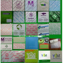 1.估算符合保護(hù)需求所需之防霉片規(guī)格,再取出適當(dāng)規(guī)格防霉貼片,一起放入物品包裝袋(盒)內(nèi),一起包裝。一片5cm*5cm防霉片有效空間約25cm*25cm*15cm。