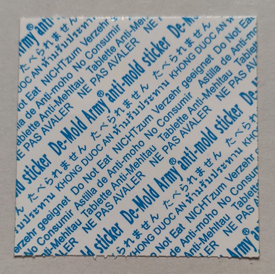 3.請將未使用完畢的de-moldarmy禁霉菌防霉片存放于包裝袋內(nèi)并盡快用透明膠紙密封保存,并于一星期內(nèi)使用完畢效果。
