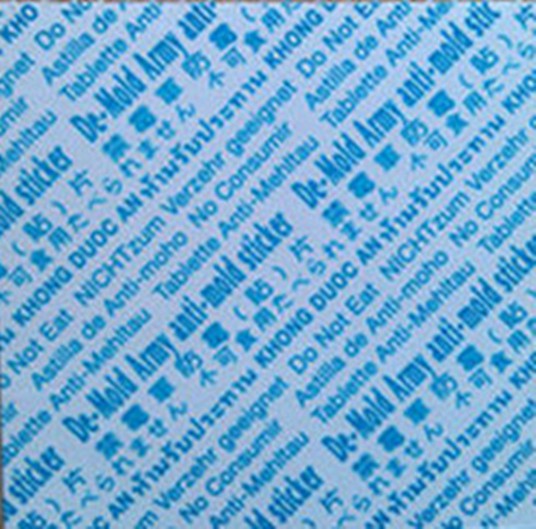 1. de-moldarmy禁霉菌防霉片防霉劑氣體可均勻充塞分布于物體之表面,可抑制一般霉菌、細(xì)菌、害蟲之生長。無須混合或接觸物品即可防霉抑菌,不會殘留在被保護(hù)之物品上造成后用者之不便。