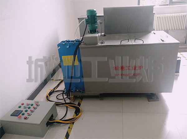 外熱式硝鹽爐鹽浴爐由爐體、不銹鋼坩鍋、電熱元件和自動控溫柜組成,使用硝鹽進行零件淬火、回火加熱、等溫淬火冷卻,液體化學熱處理等多種工藝,爐體由型鋼和鋼板焊接而成,爐面采用冷軋鋼板制成,爐襯采用節(jié)能超輕質高強度耐火磚,夾層置硅酸鋁纖維,爐襯與爐殼之間填充保溫膨脹保溫粉,整個結構為標準型節(jié)能爐襯,電阻絲采用較粗直徑高溫電阻絲繞成螺旋狀按照均溫布絲法,安置在爐襯的擱絲磚上,擱絲磚采用前部上翹20°防掉絲磚,電阻絲不易掉出。坩鍋采用耐熱不銹鋼板密焊制成。在坩鍋一側安裝由攪拌電機,在坩鍋內底部組成多孔導流孔,通過攪拌系統(tǒng)使鹽液快速循環(huán)上下左右翻騰,達到鹽液內任何一點溫度均勻一致。硝鹽爐可通過自動控溫電柜的配合使用,可使淬火工件在很短時間內快速冷卻到等溫淬火所需要的任何工藝溫度內自動恒溫。